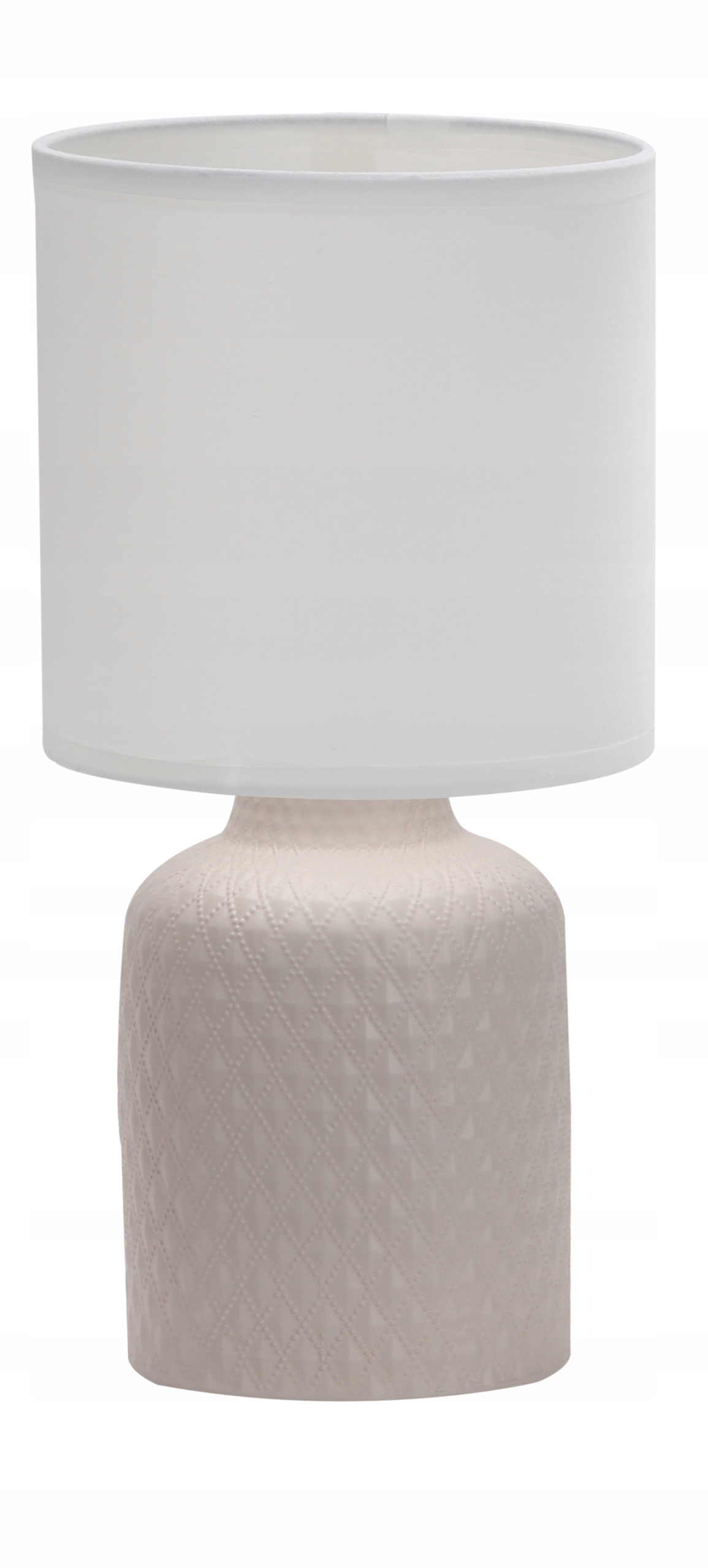 - Nie zawiera głównego źródła światła Trzonek: E14 Moc max (W): 40 Materiał: podstawa ceramiczna, abażur tkanina+PCV Kolor: beżowy