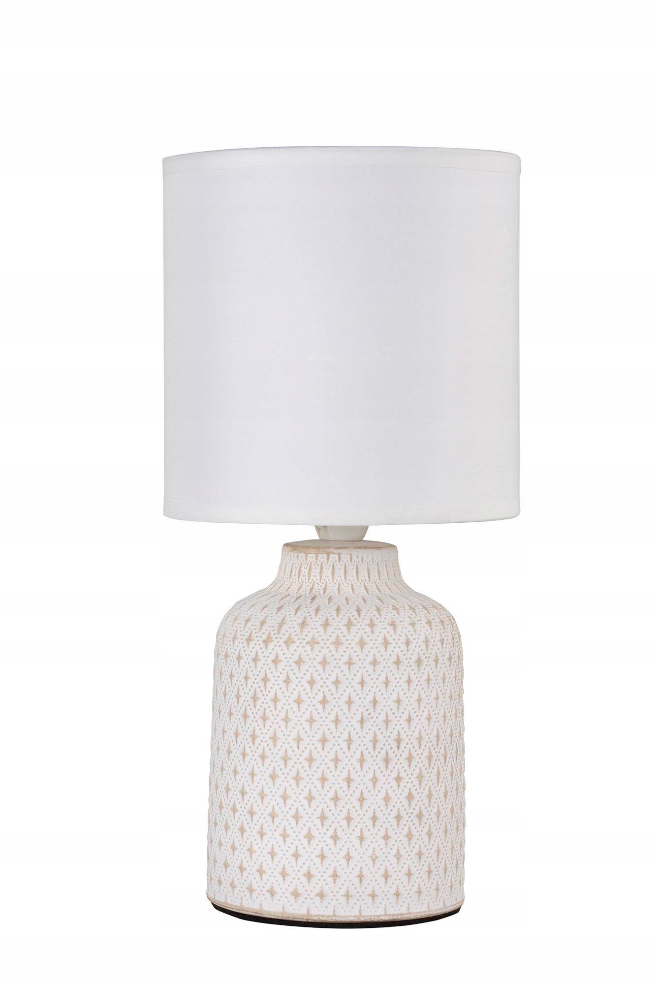 - Nie zawiera głównego źródła światła Trzonek: E27 Moc max (W): 40 Materiał: podstawa ceramiczna, abażur tkanina+PCV Kolor: biały