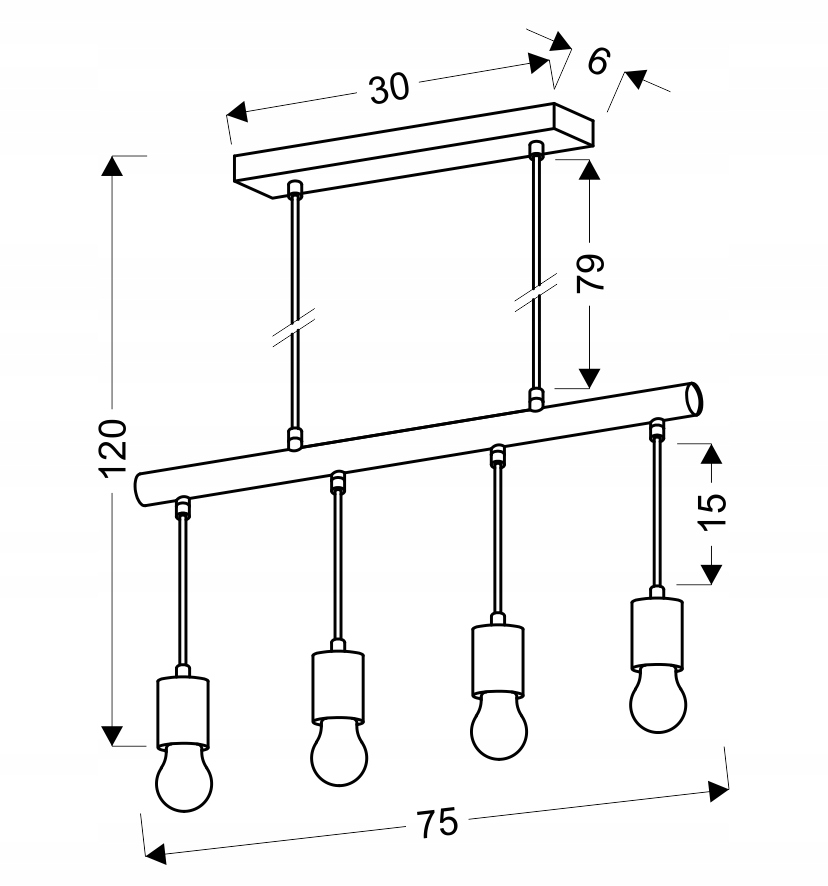 • Nie zawiera głównego źródła światła Trzonek: E27 Moc max (W): 4x60 Materiał: zawiesie stalowe, bez kloszy Kolor: czarny