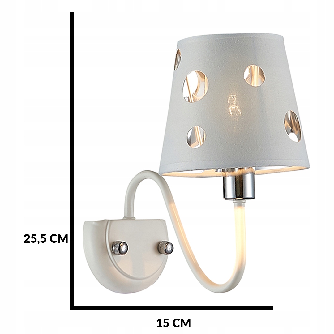 - Nie zawiera głównego źródła światła Trzonek: E14 Moc max (W): 60 Materiał: metal, tkanina Kolor: biały