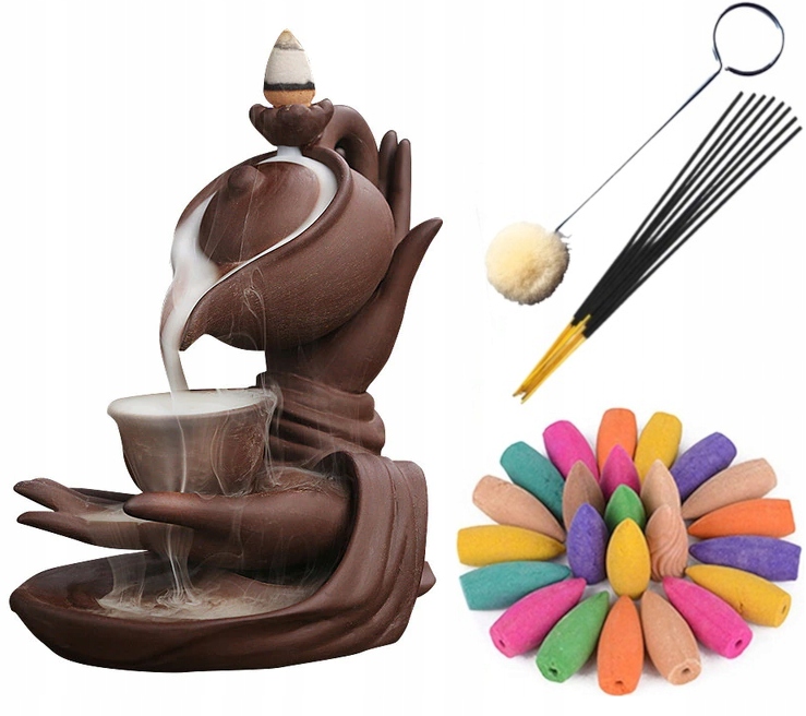 - Zrelaksuj się i odpłyń w stan medytacji obserwując powoli spływający dym z kadzidełka stożkowego.