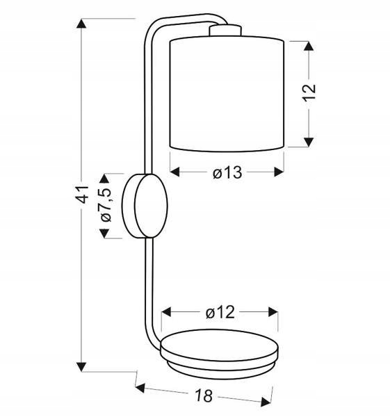 - Nie zawiera głównego źródła światła Trzonek: E14 Moc max (W): 40 Materiał: podstawa stalowa + drewno, abażur tkanina + PCV Kolor: czarny