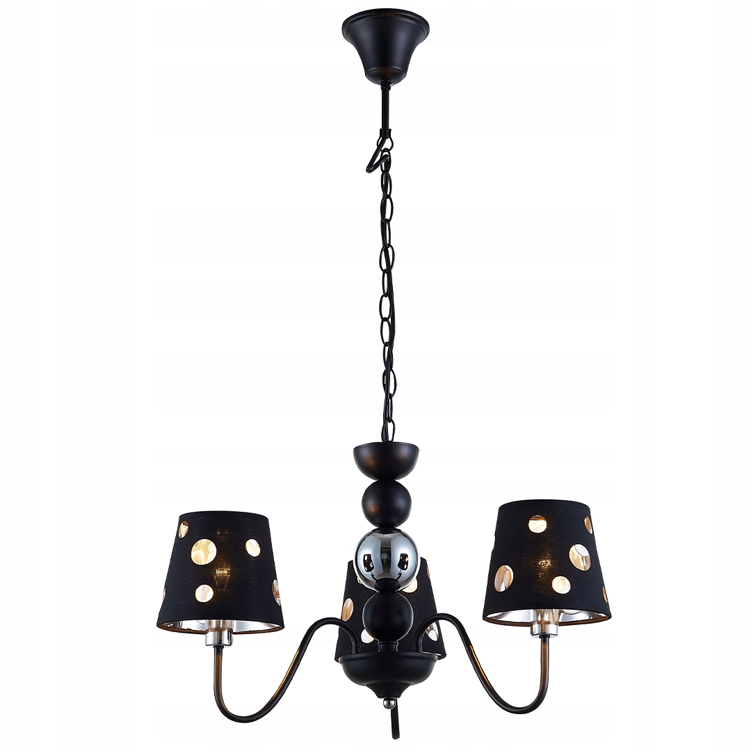 - Nie zawiera głównego źródła światła Trzonek: E14 Moc max (W): 3x60 Materiał: metal, tkanina Kolor: czarny