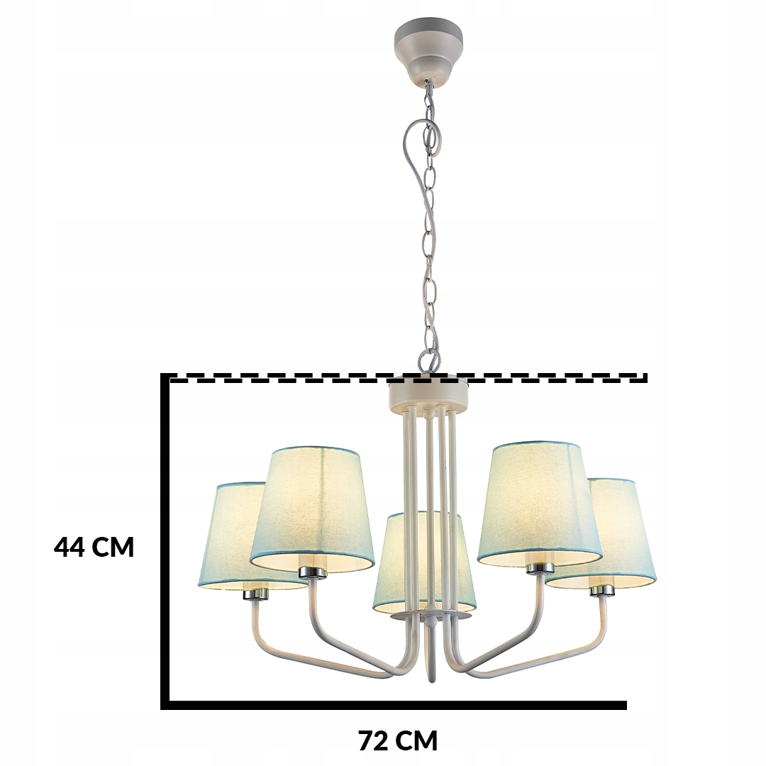 - Nie zawiera głównego źródła światła Trzonek: E14 Moc max (W): 5x60 Materiał: metal, klosz tkanina Kolor: biały