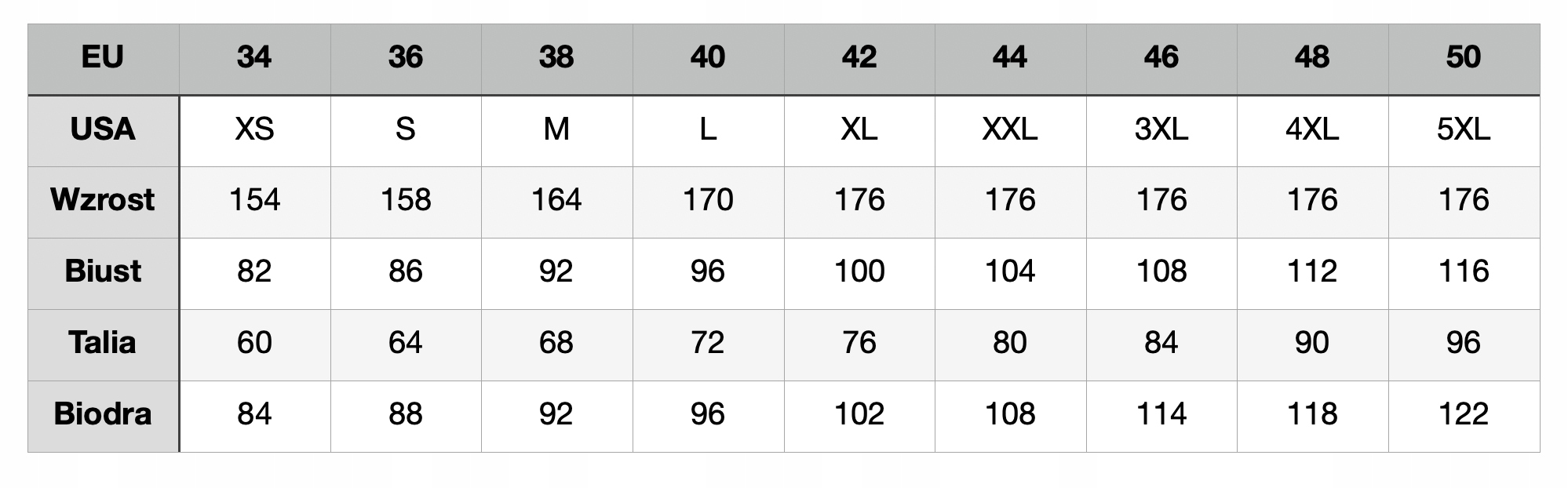 *Uwaga! Niestandardowa rozmiarówka, proszę zwracać uwagę na wypisane wymiary ciała poniżej.