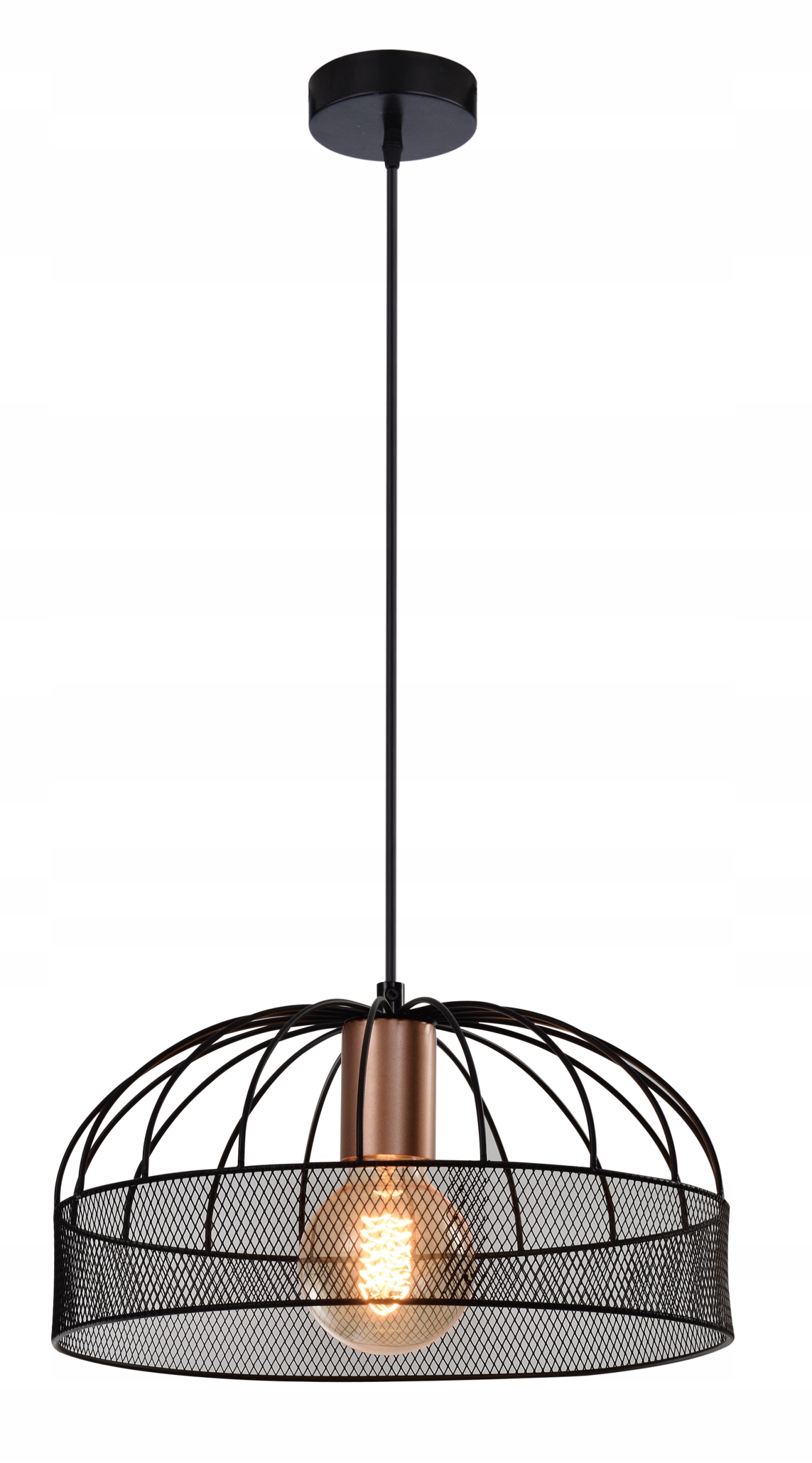 • Czarna lampa w całości wykonana z metalu, a klosz tworzy kratę osłaniającą żarówkę. To właśnie tworzy loftowy styl lampy.