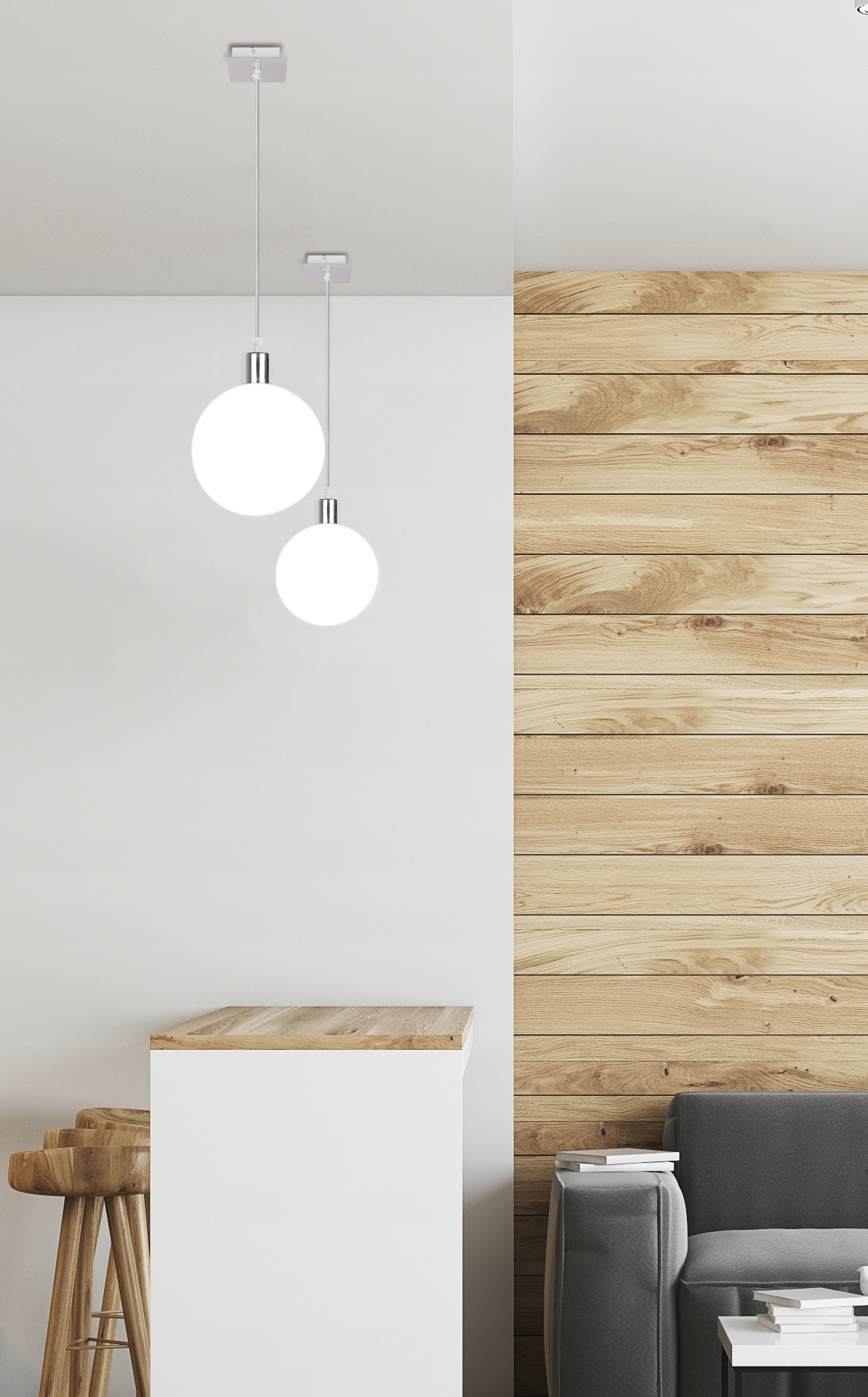 Nazwa w magazynie: ODEN LAMPA WISZĄCA CHROMOWY 1X40W G9 KLOSZ BIAŁY 15CM