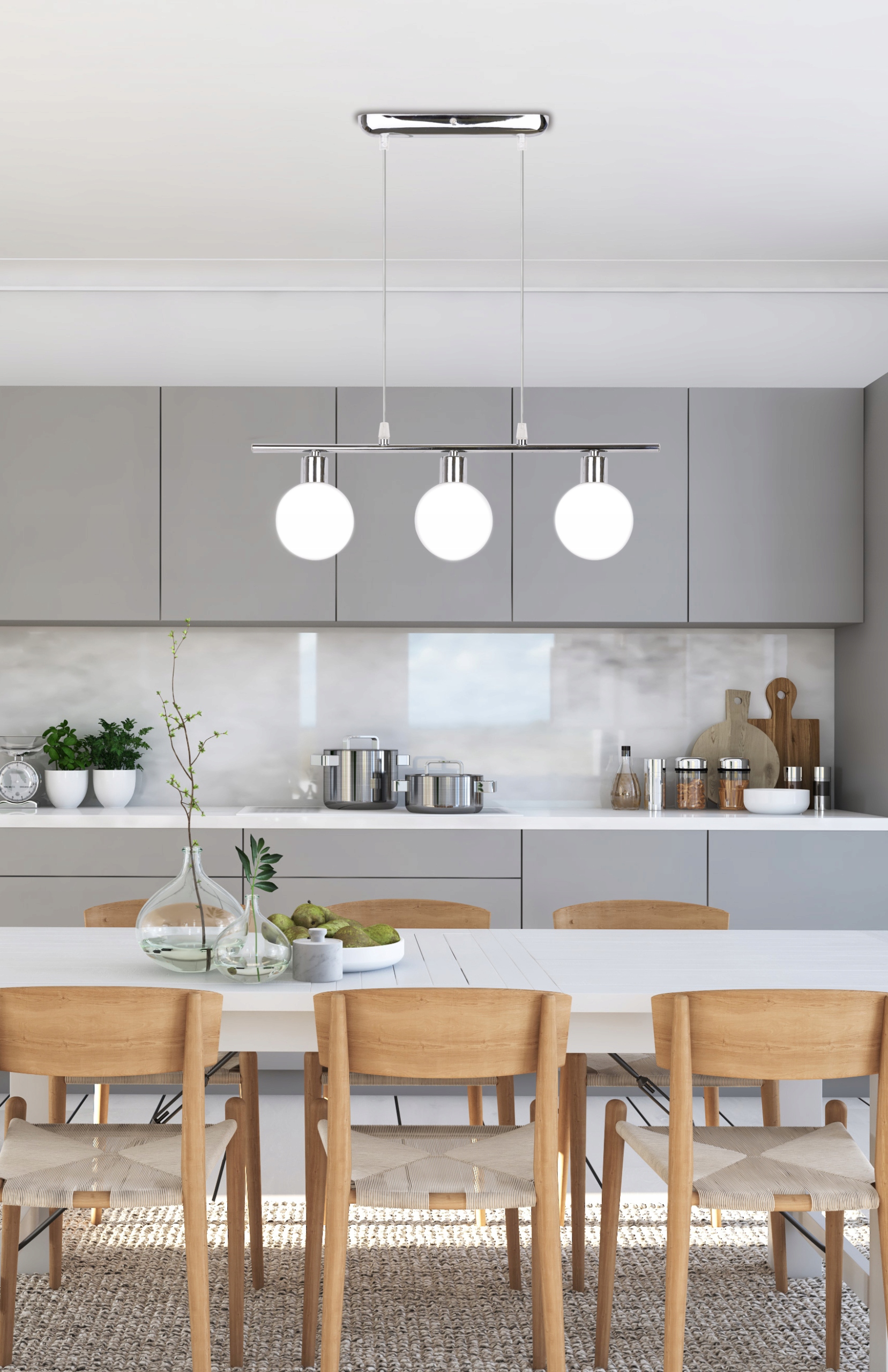 Nazwa w magazynie: ODEN LAMPA WISZĄCA CHROMOWY 3X40W G9 KLOSZ BIAŁY