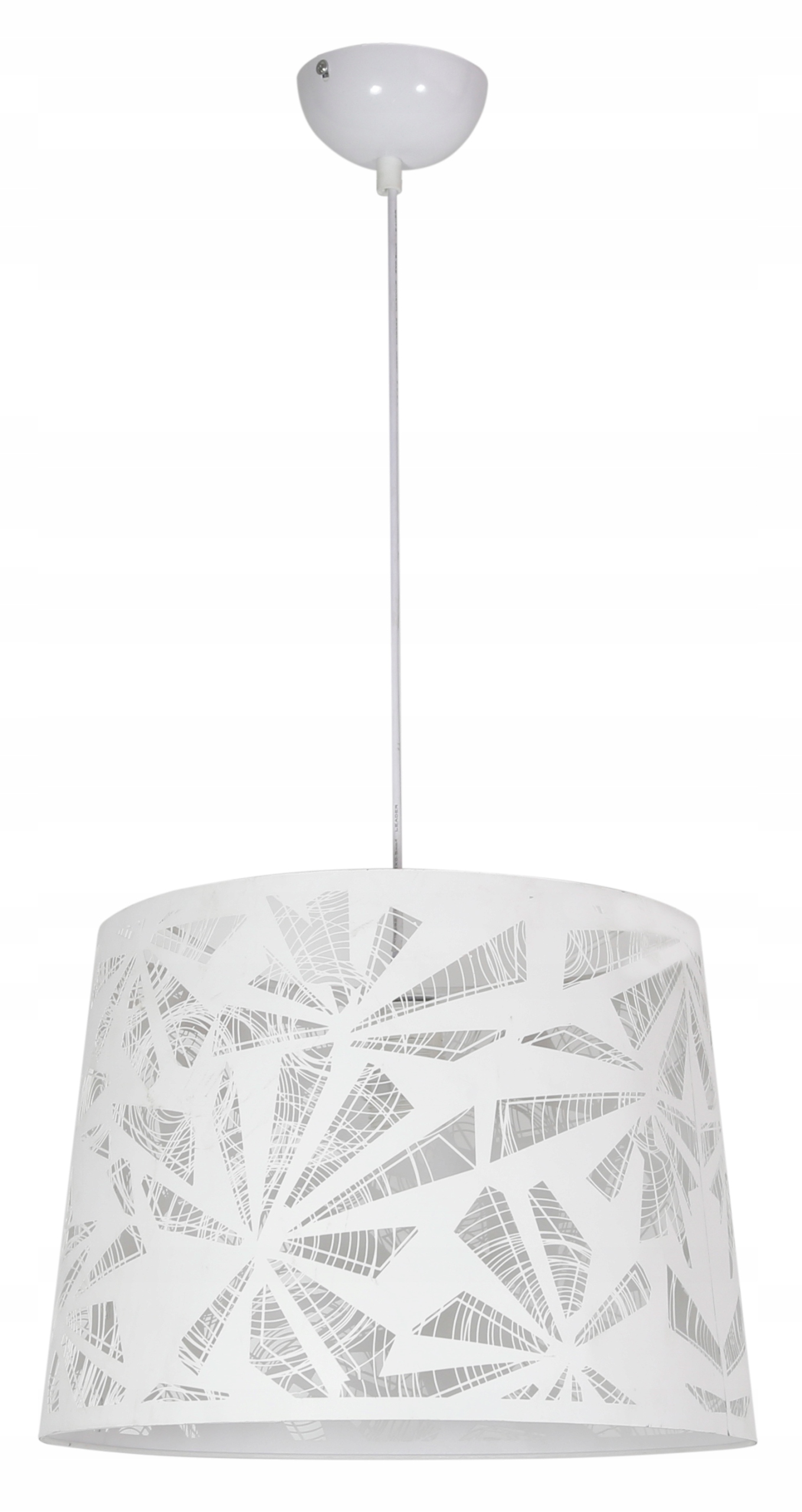 - Nie zawiera głównego źródła światła Trzonek: E27 Moc max (W): 60 Materiał: zawiesie stalowe z linką, abażur metalowy z wyciętym wzorkiem Kolor: biały
