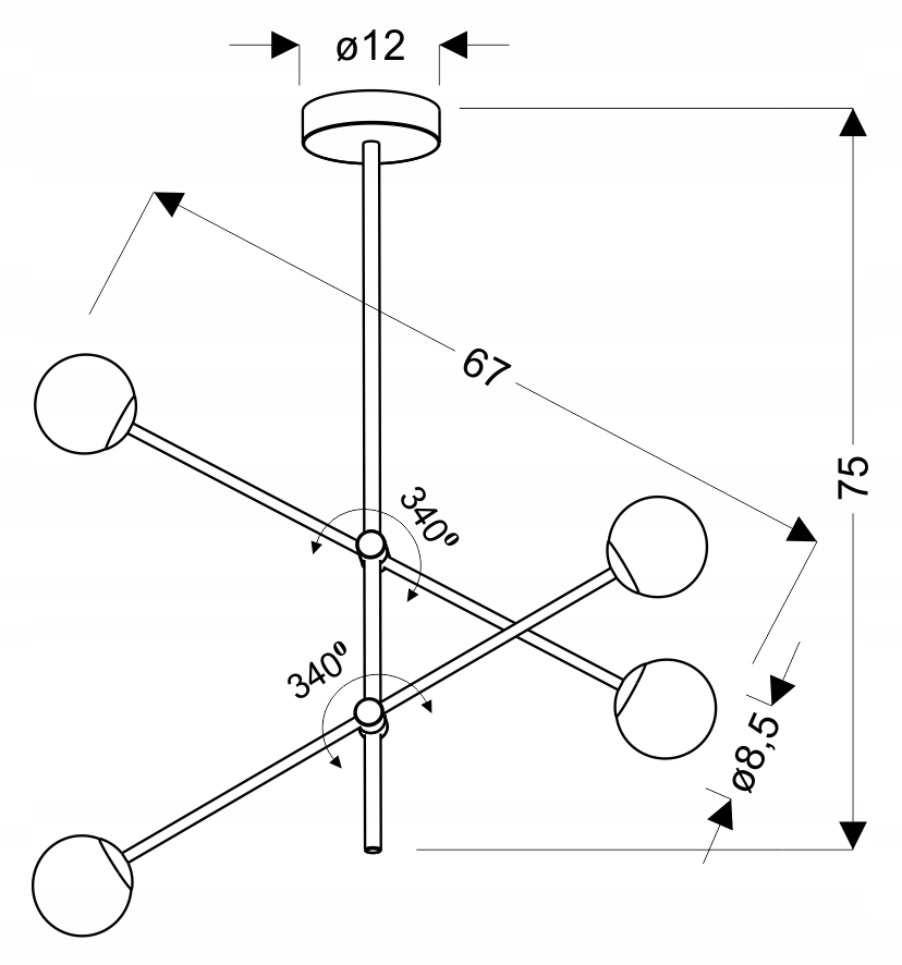 - Zawieszone na sztycy z obrotowymi ramionami, pozwalające na zmianę położenia abażurów.