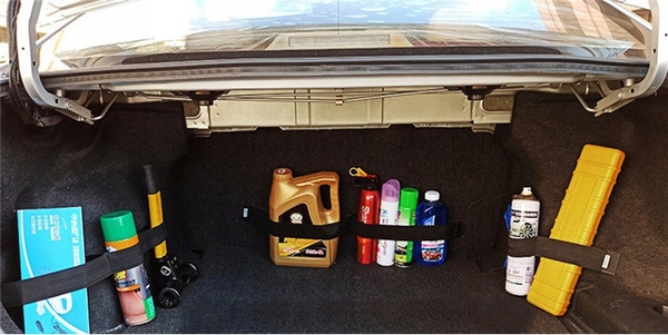 - Koniec z rozlewającymi się płynami i bałaganem w bagażniku