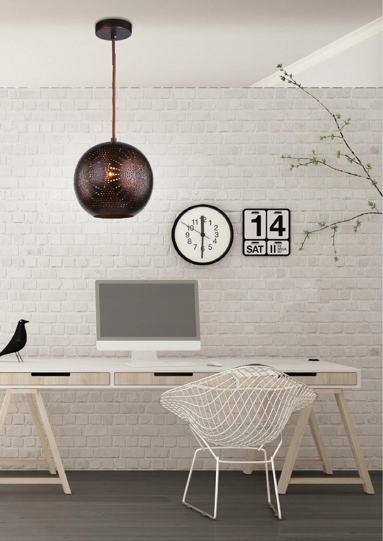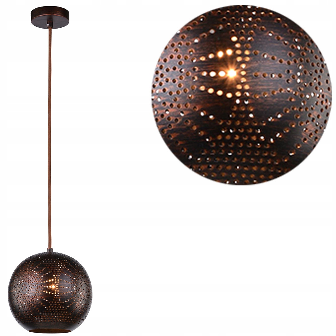 - Nie zawiera głównego źródła światła Trzonek: E27 Moc max (W): 60 Materiał: klosz metalowy ażurowy, zawiesie metal Kolor: brązowy