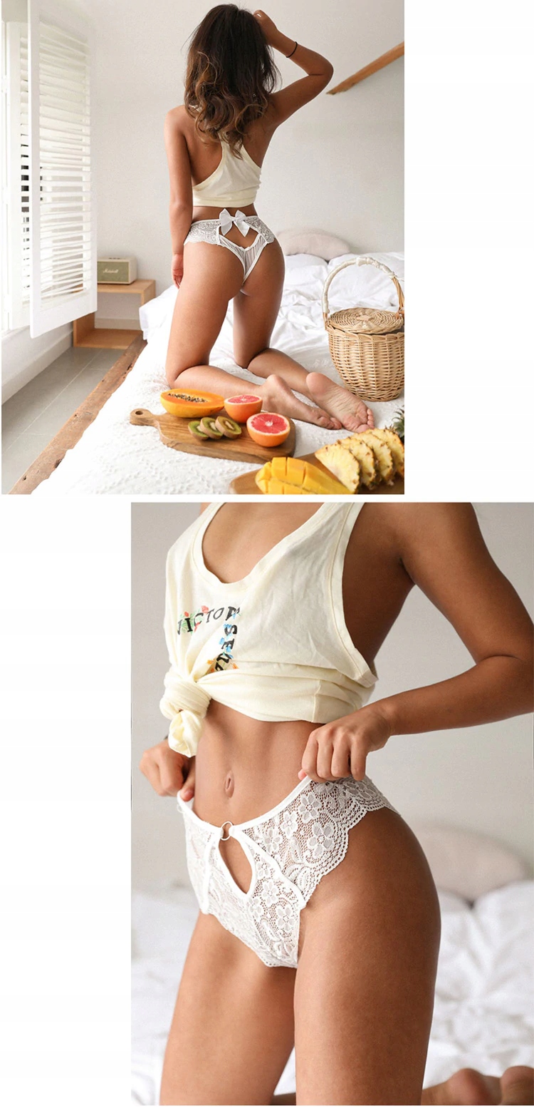 - Koronkowe majtki z wcięciami z przodu oraz z tyłu sprawiają, że będziesz wyglądać w nich zmysłowo.