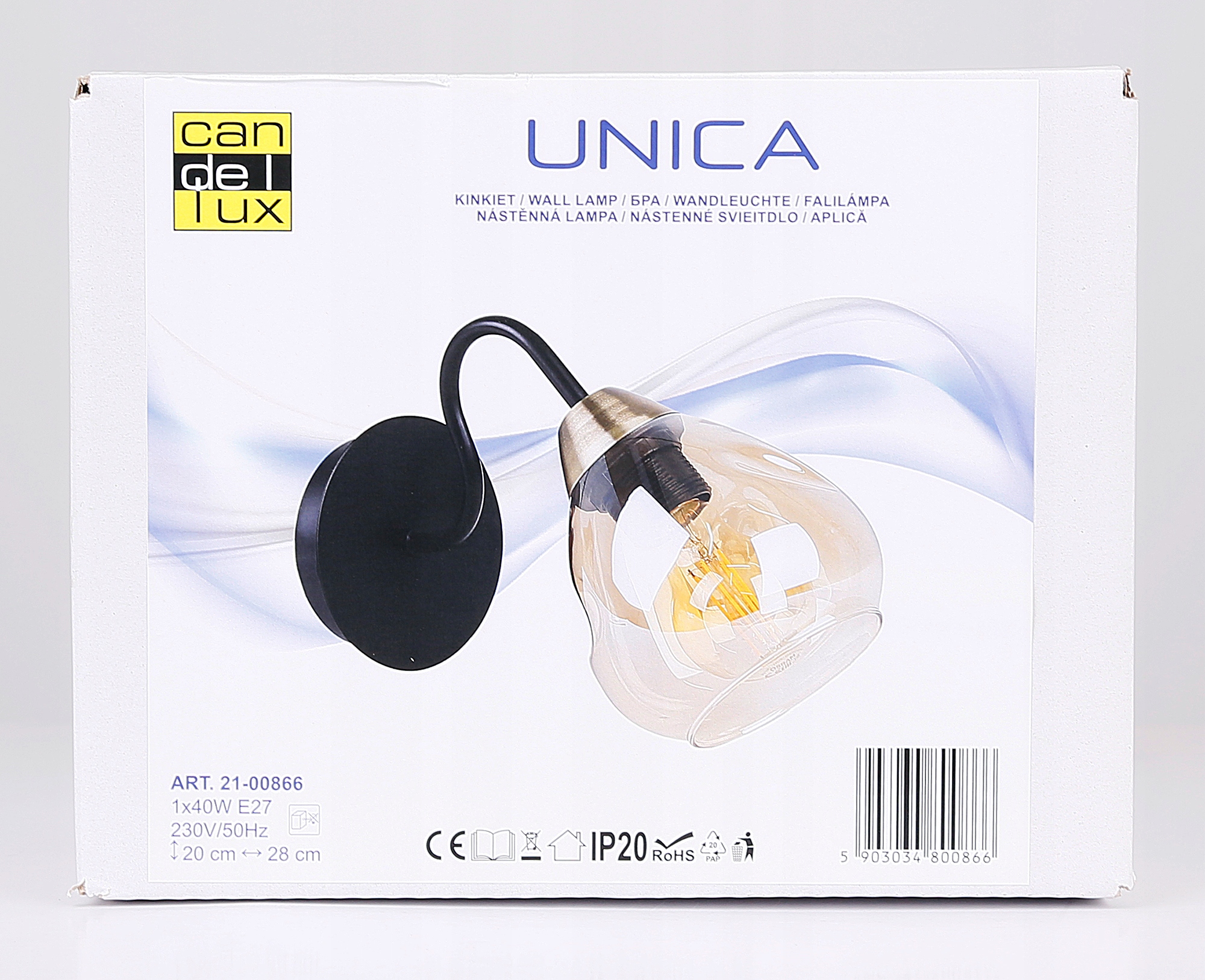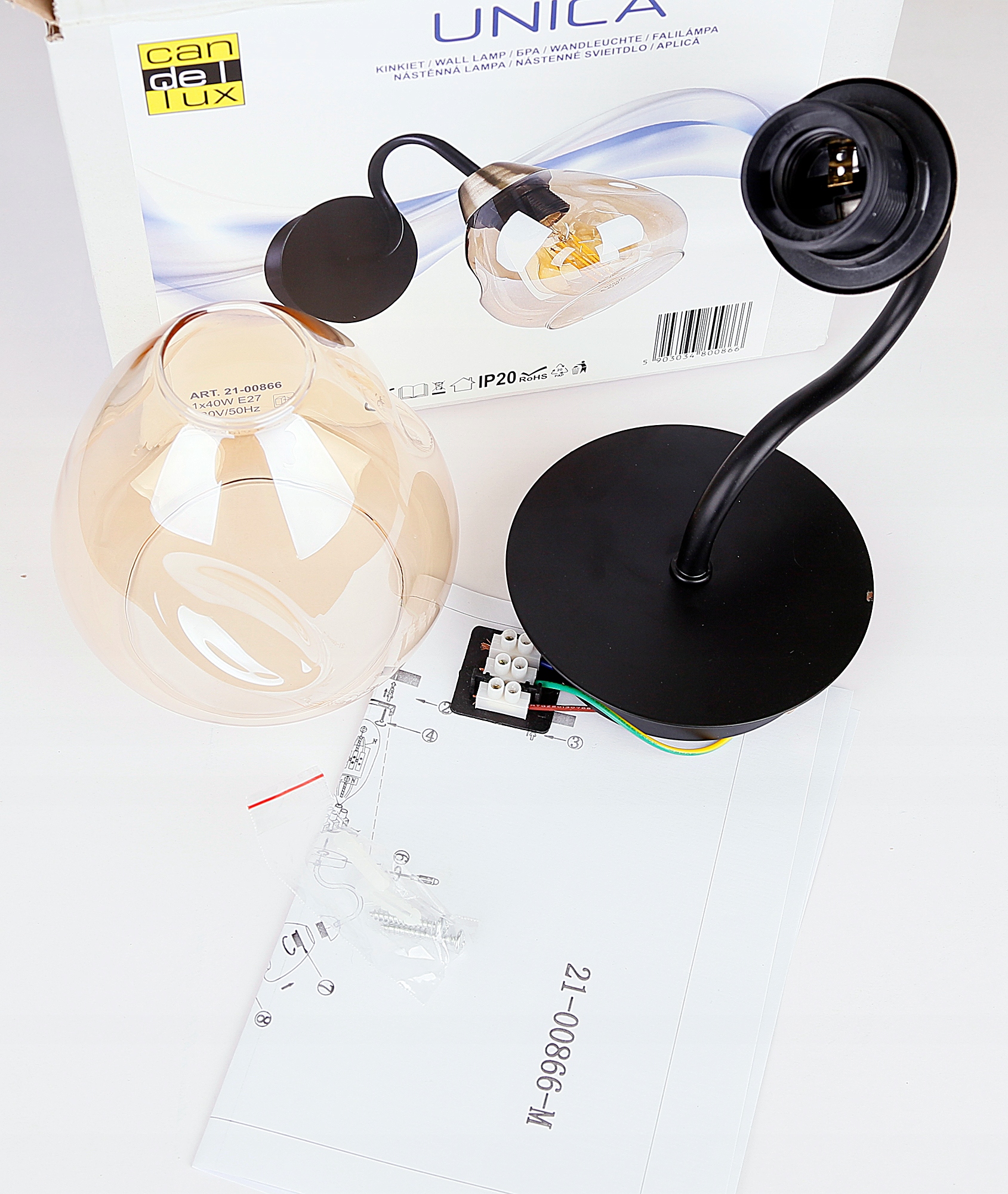 Nazwa w magazynie: UNICA LAMPA KINKIET CZARNY+ZŁOTY 1X40W E27 KLOSZ DYMIONY
