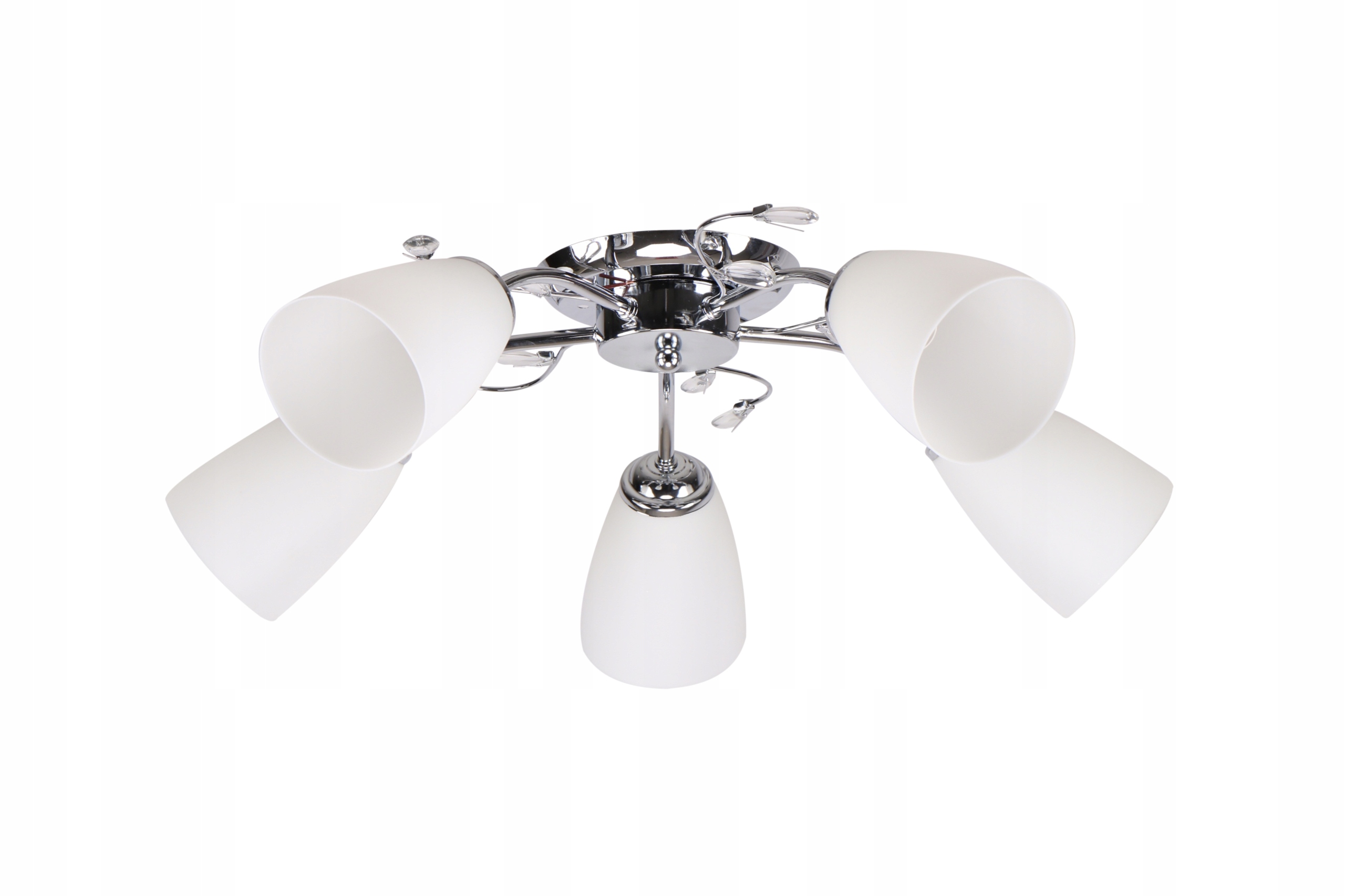 - Nie zawiera głównego źródła światła Trzonek: E14 Moc max (W): 5x40 Materiał: podstawa stalowa, klosz plastikowy Kolor: chromowy