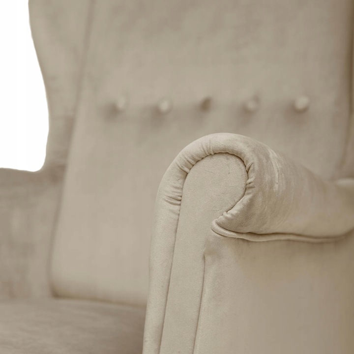- Klasyczny styl uszaka z nowoczesnym akcentem sprawia, że fotel będzie doskonale komponować się w każdym wnętrzu, dodając mu elegancji i uroku.