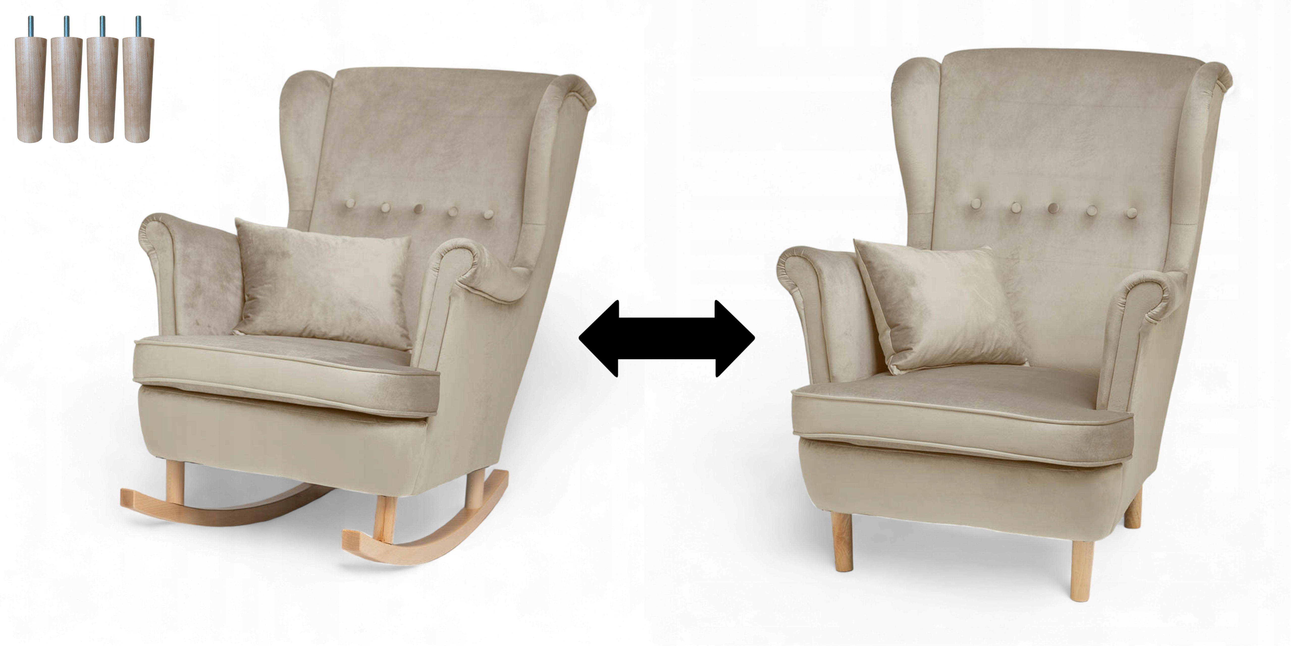 ✅Nogi w zestawie pozwalają na zmianę fotela bujanego w standardowy