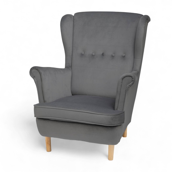 • Klasyczny styl uszaka z nowoczesnym akcentem sprawia, że fotel będzie doskonale komponować się w każdym wnętrzu, dodając mu elegancji i uroku.