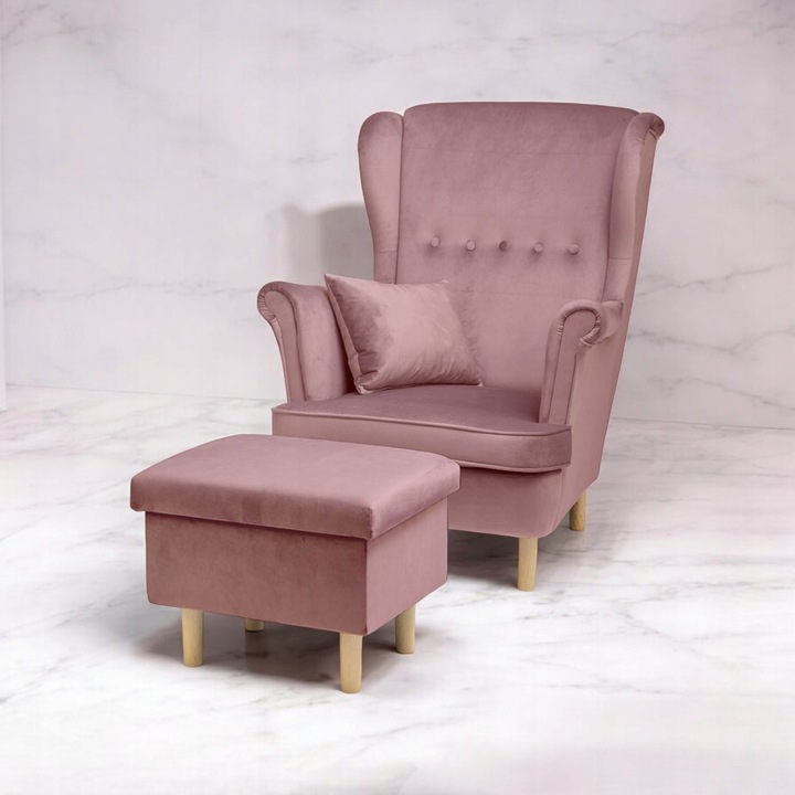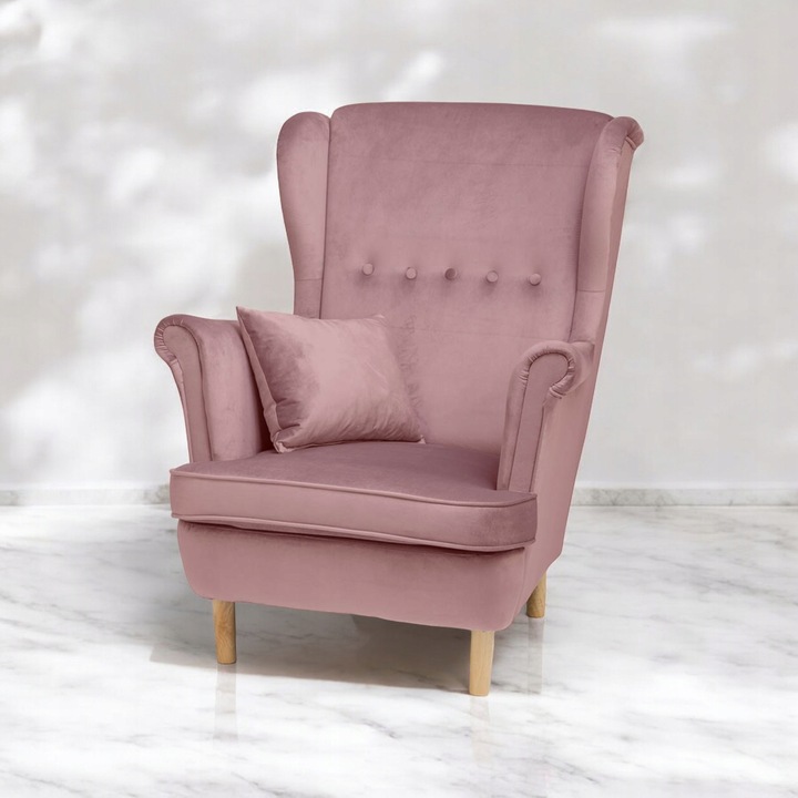 • Klasyczny styl uszaka z nowoczesnym akcentem sprawia, że fotel będzie doskonale komponować się w każdym wnętrzu, dodając mu elegancji i uroku.