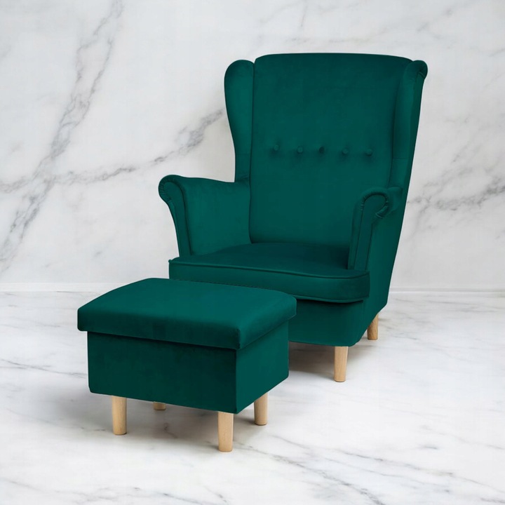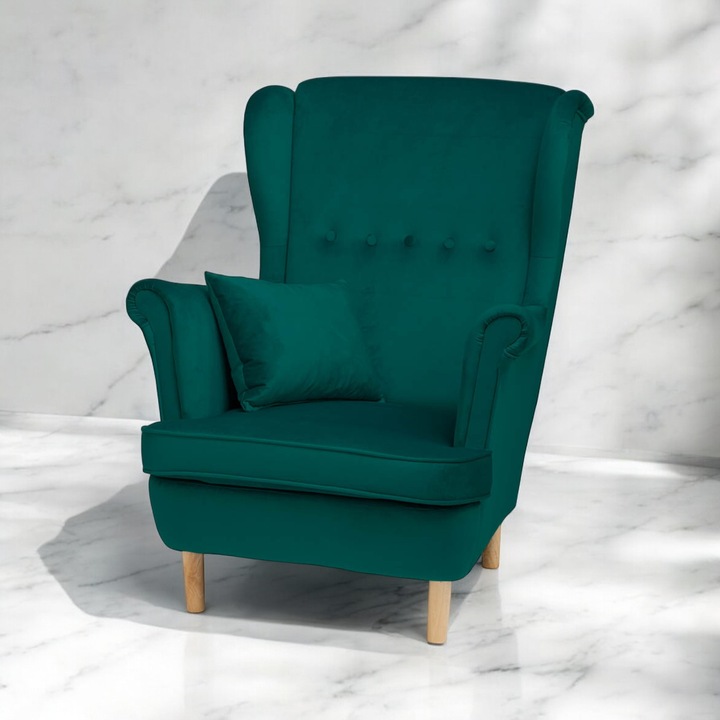 - Klasyczny styl uszaka z nowoczesnym akcentem sprawia, że fotel będzie doskonale komponować się w każdym wnętrzu, dodając mu elegancji i uroku.