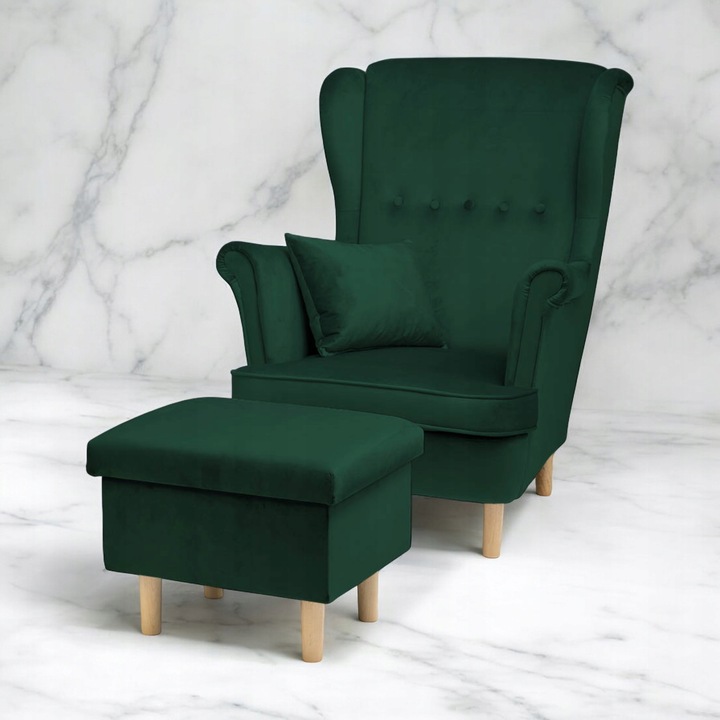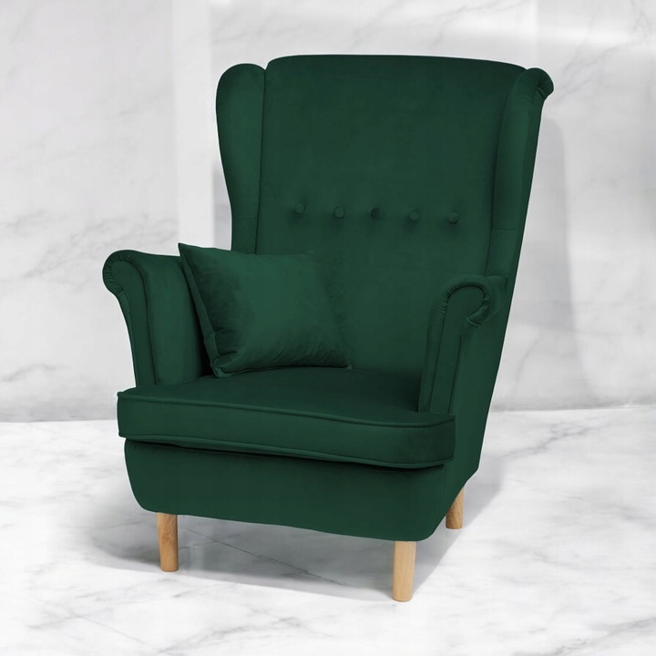 • Klasyczny styl uszaka z nowoczesnym akcentem sprawia, że fotel będzie doskonale komponować się w każdym wnętrzu, dodając mu elegancji i uroku.