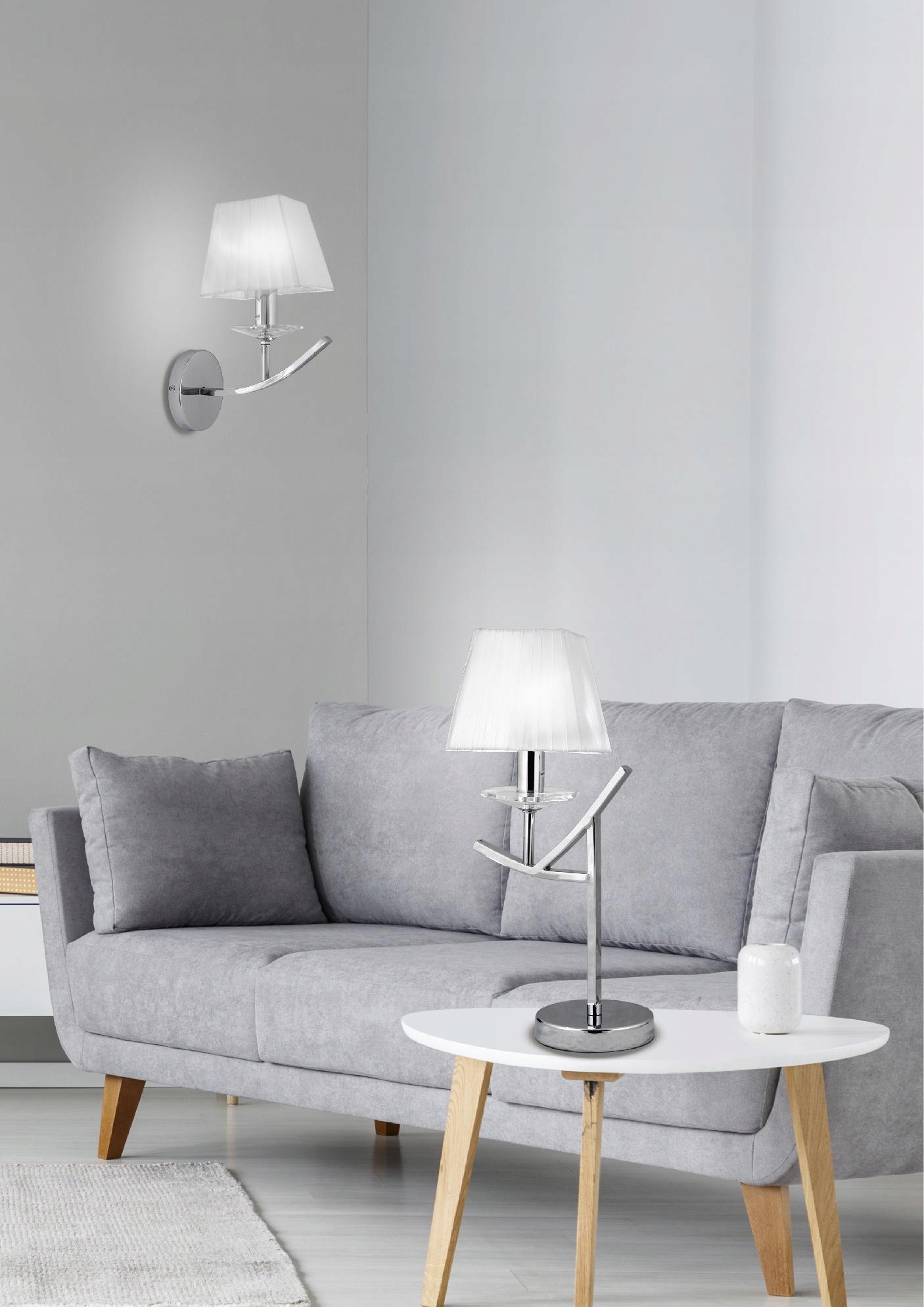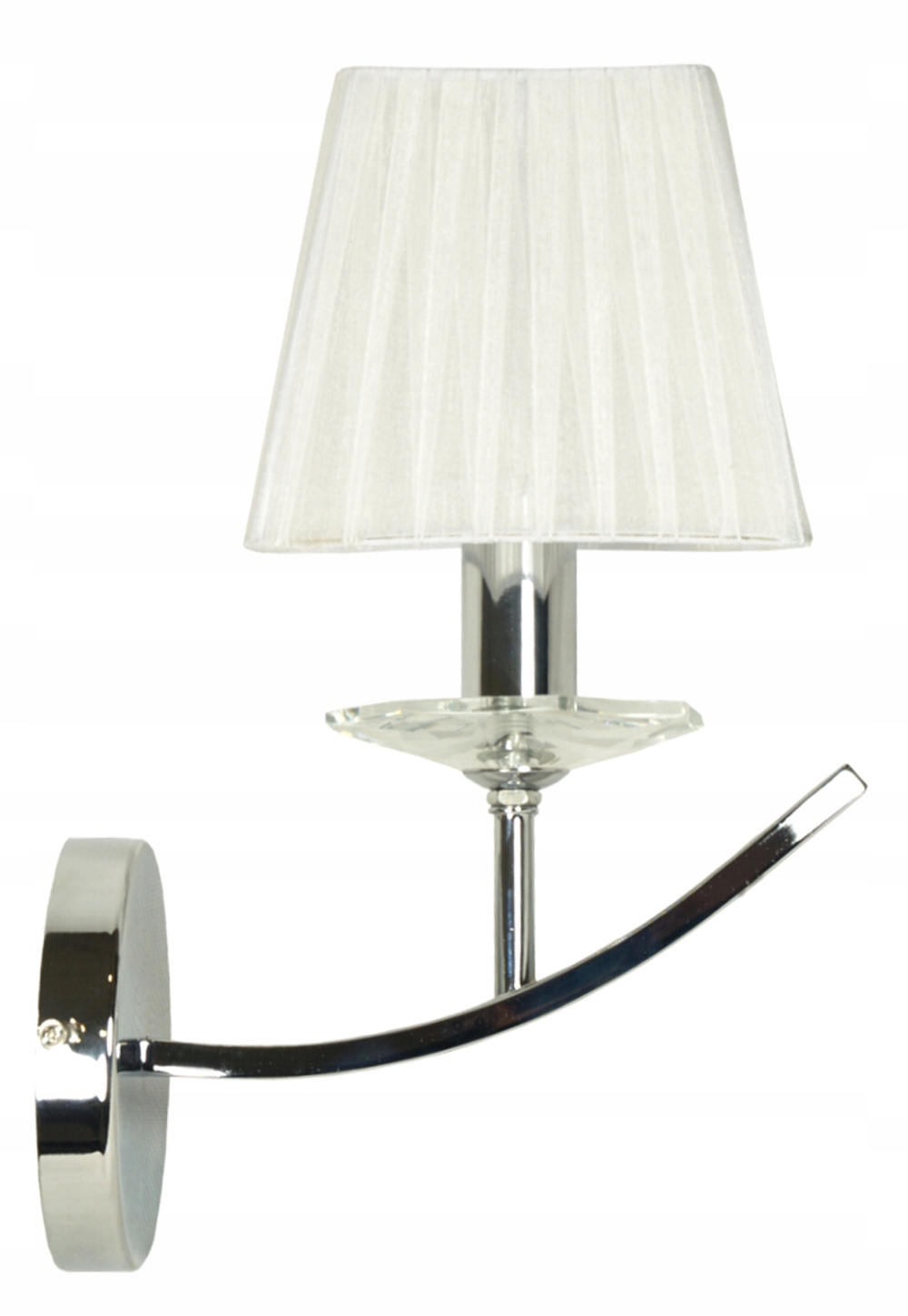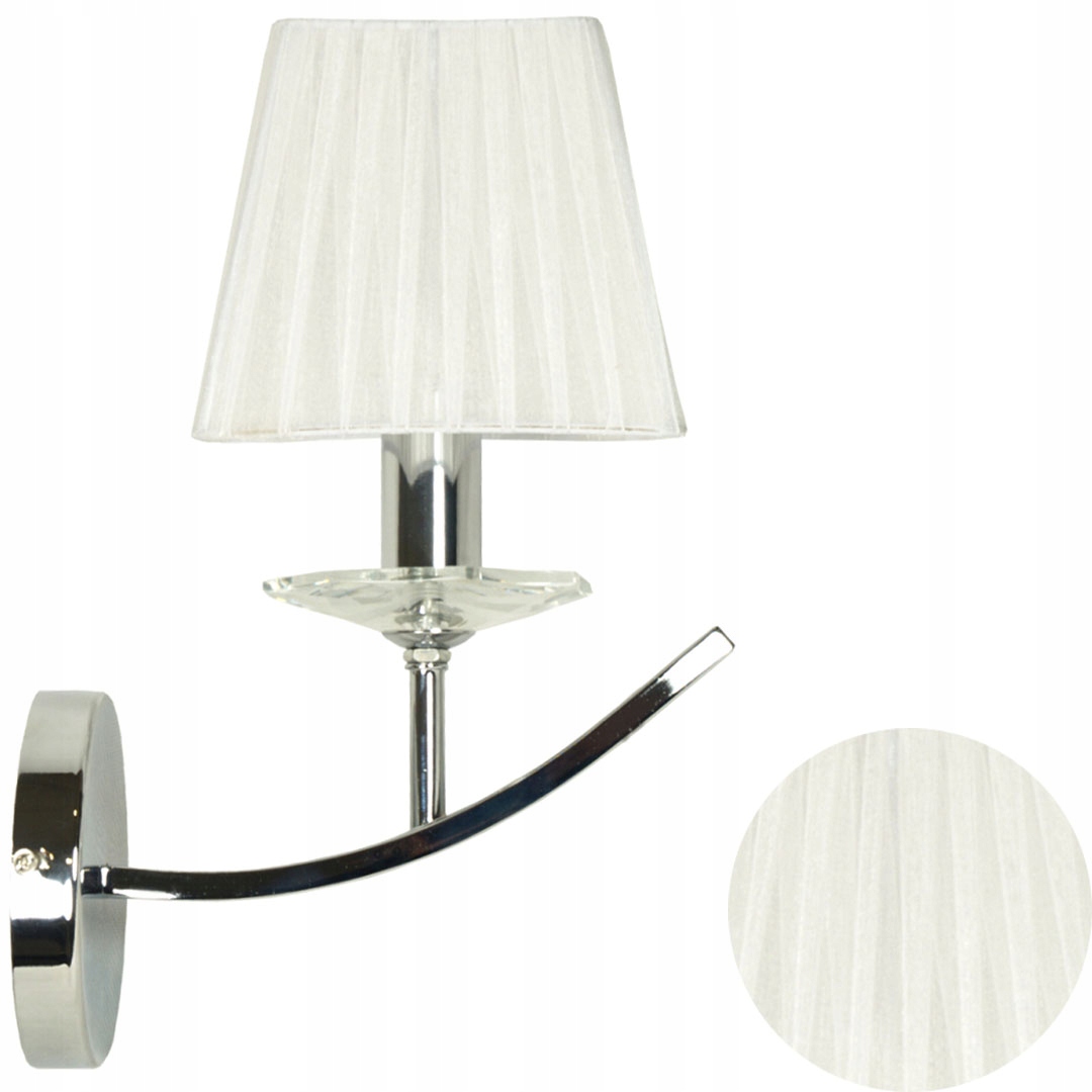 - Nie zawiera głównego źródła światła Trzonek: E14 Moc max (W): 40 Materiał: podstawa stalowa, abażur z tasiemki z organzy Kolor: chromowy, abażur biały