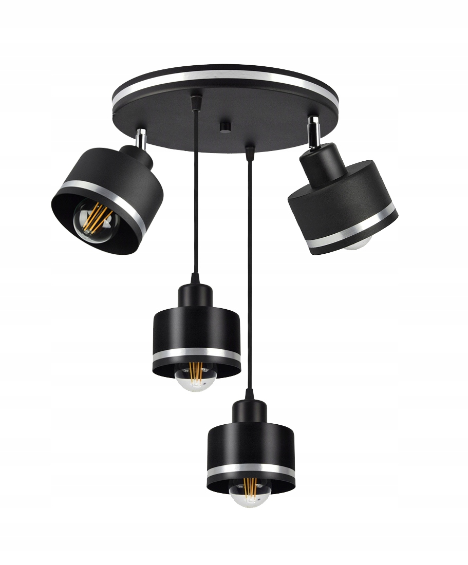 Wama lampa wisząca czarny talerz 4x40w e27 klosz czarny+srebrny