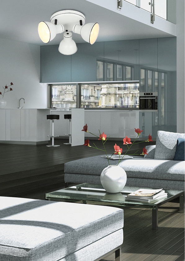 - Nie zawiera głównego źródła światła Trzonek: E14 Moc max (W): 3x40 Materiał: podstawa stalowa, klosz metalowy Kolor: biało czarny